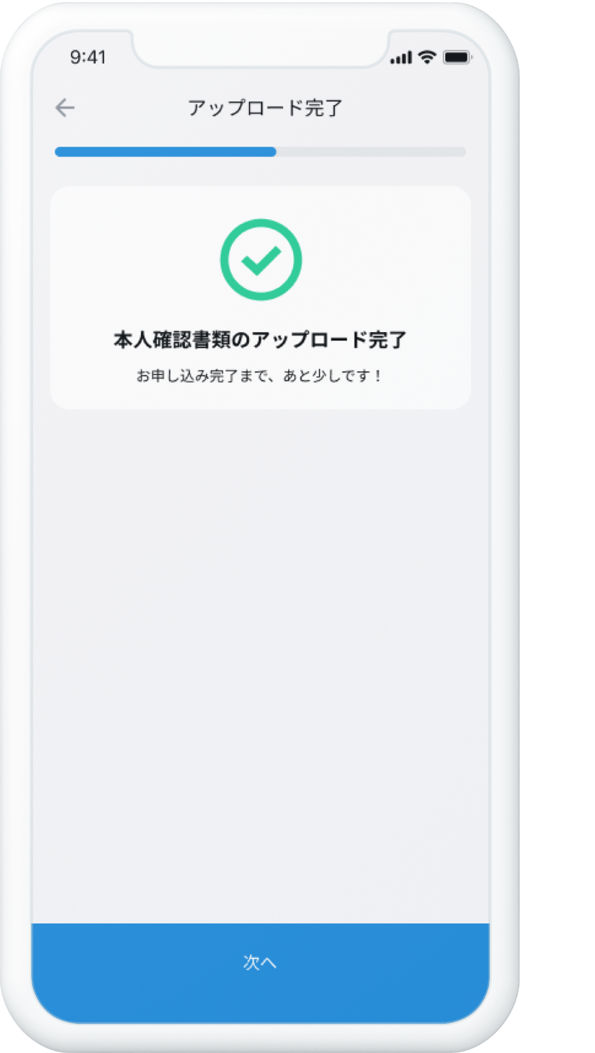 本人確認書類1点をアップロードし、必要5項目を入力。