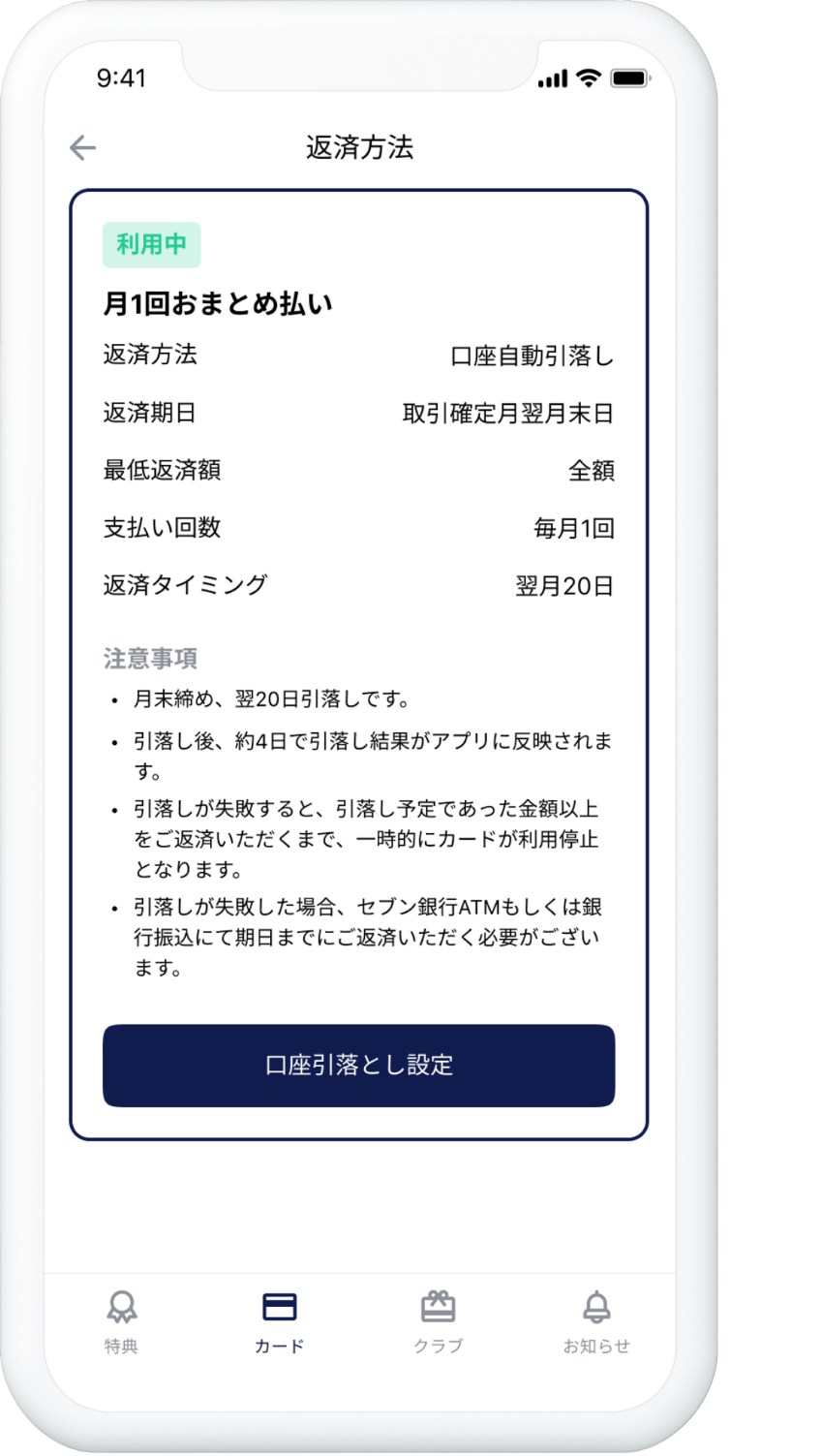 ナッジでは、一般的な返済方法である「口座自動引き落とし」と